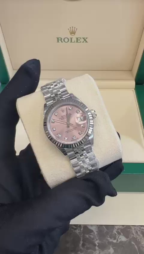 Mit einem rosa Zifferblatt und einem Rolesor-Armband aus Everose-Gold und Stahl vereint dieses Modell auf perfekte Weise Eleganz und Charme und ist somit eine ausgezeichnete Wahl für Frauen, die sowohl Funktionalität als auch Stil suchen.